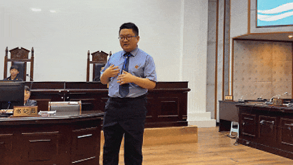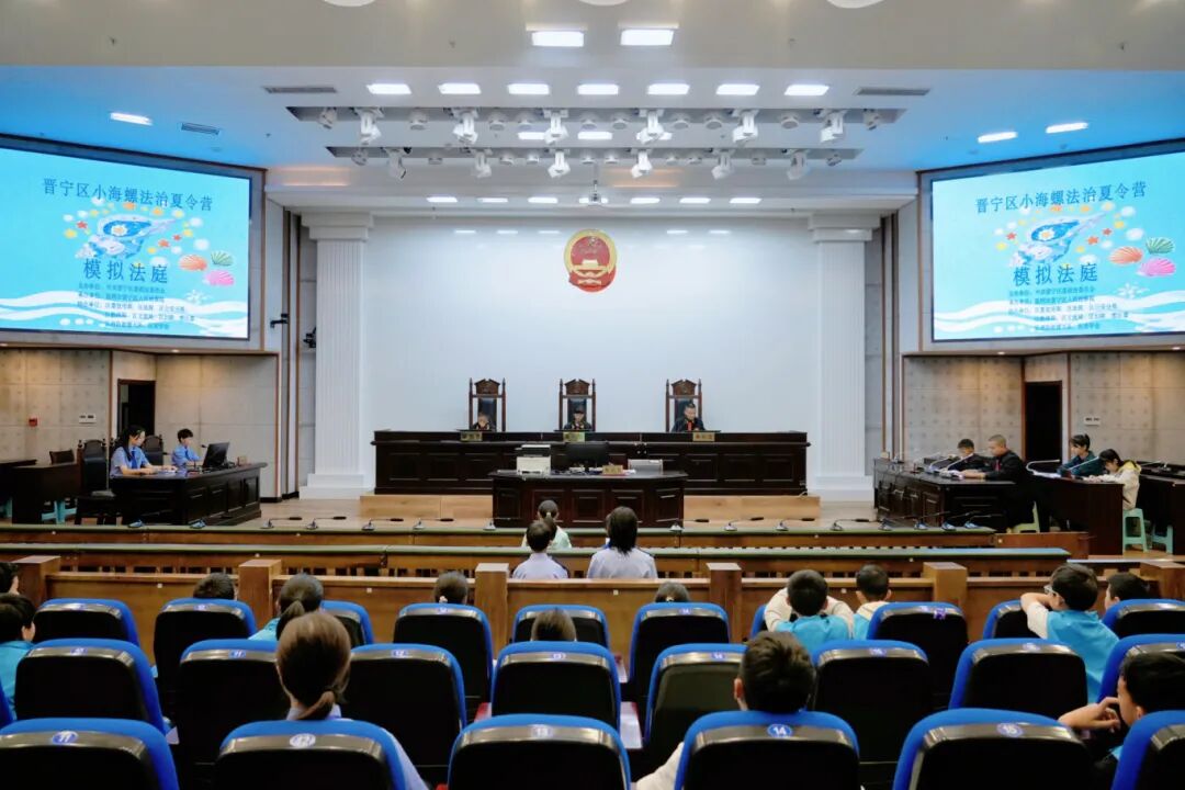 8月22日上午,一场别开生面的模拟法庭体验在晋宁区人民法院进行。14名参加此次法治夏令营的小营员“变身”审判员、公诉人、律师、法警、被告人、书记员以及被告人家属,沉浸式参与“庭审”。