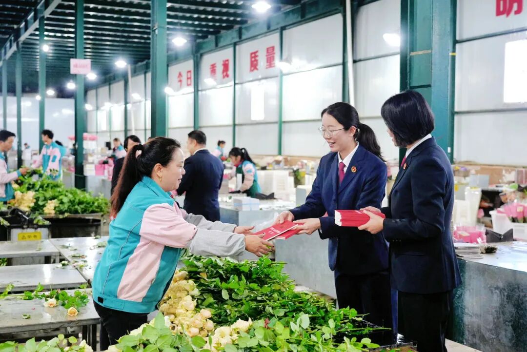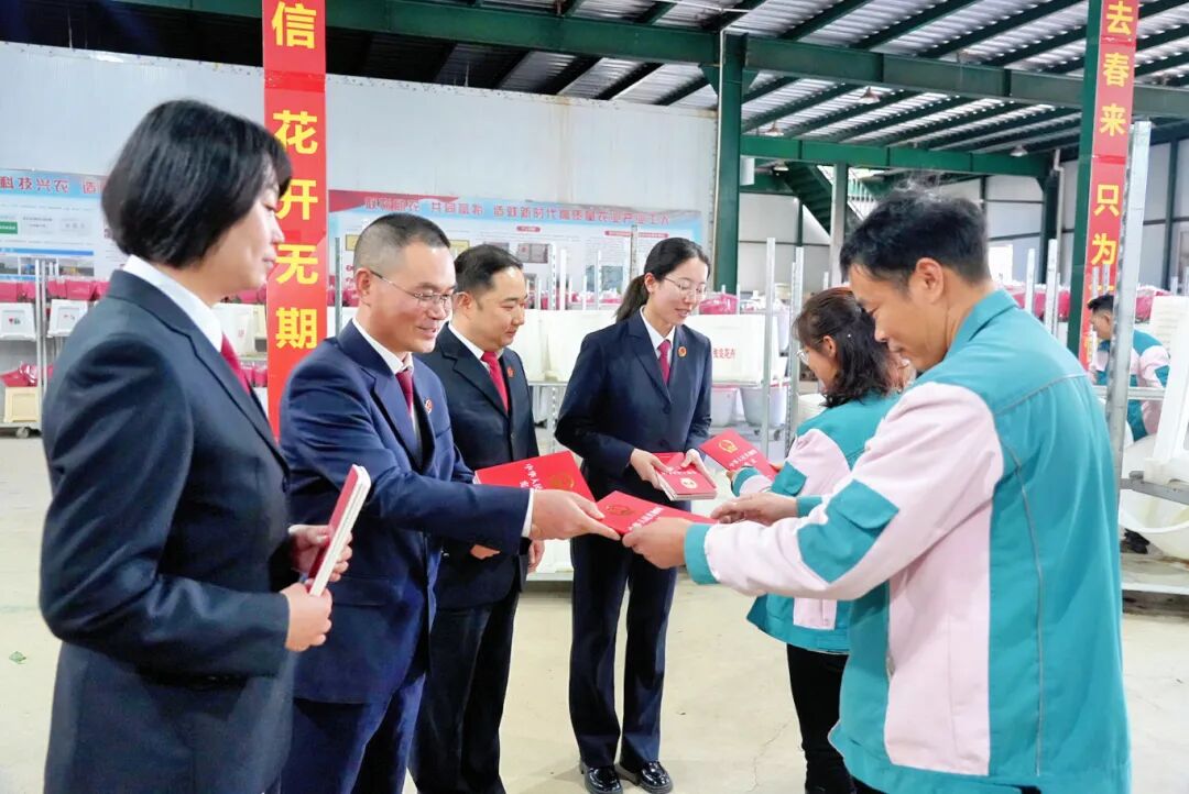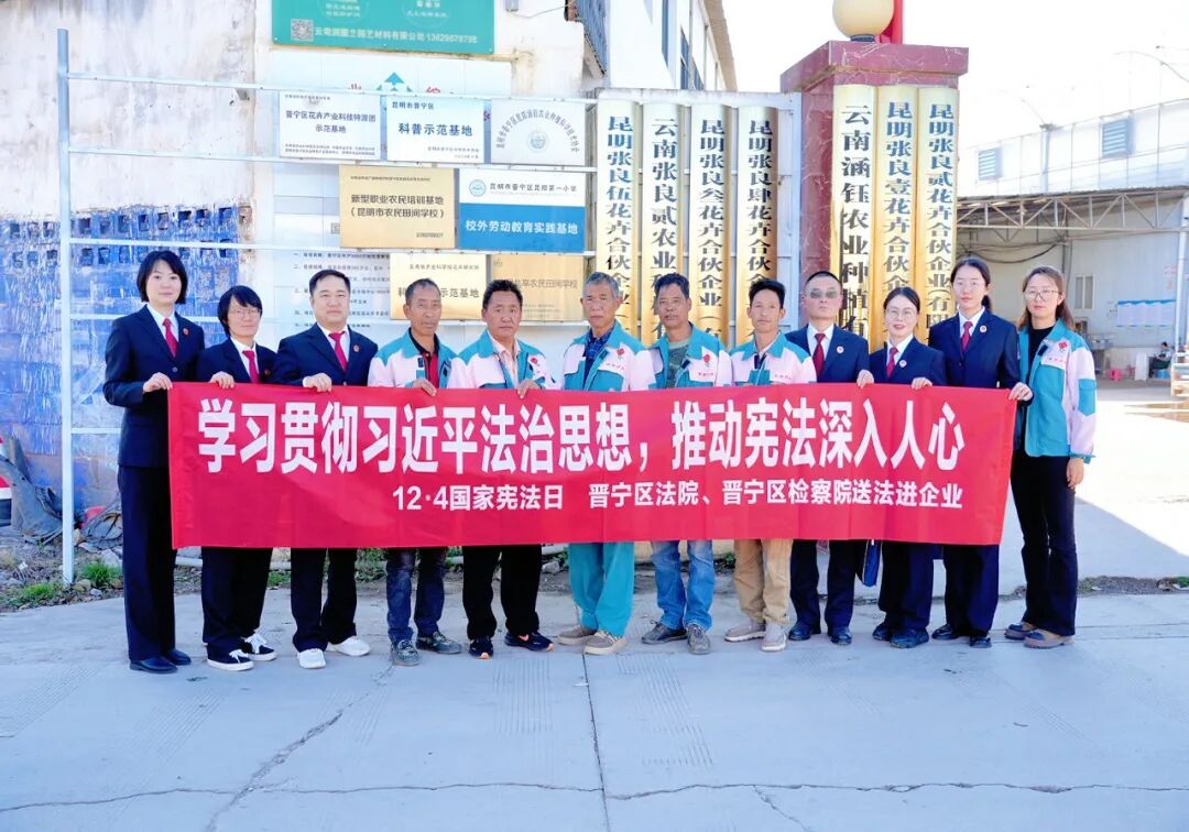 12月4日,在晋宁区一家花卉企业,晋宁区人民法院、区人民检察院工作人员以宪法宣传周为契机,为企业员工讲解宪法知识。
