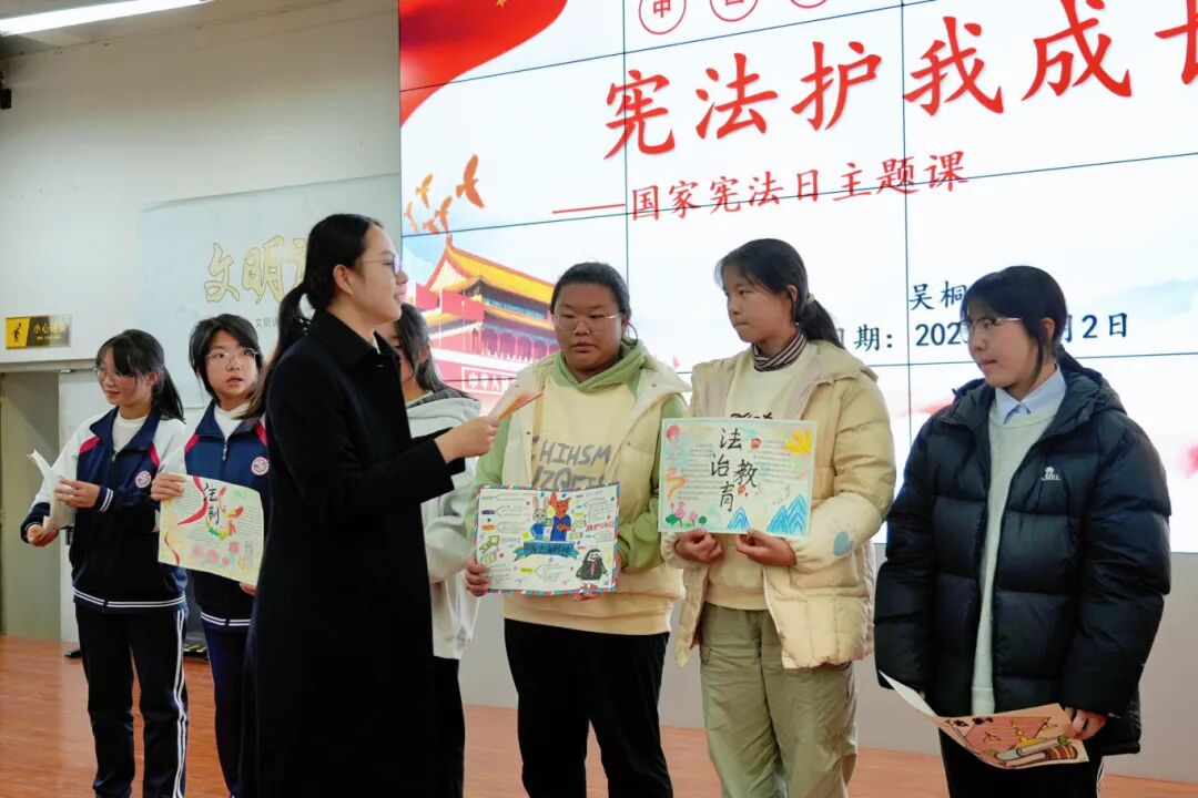 活动结束前,同学们还向检察官展示了各自的法治手抄报。这些手抄报,既有对公平正义的美好向往,还有对法治社会的纯真诠释,大家在创作与分享中尊法学法守法用法的种子萌芽破土。