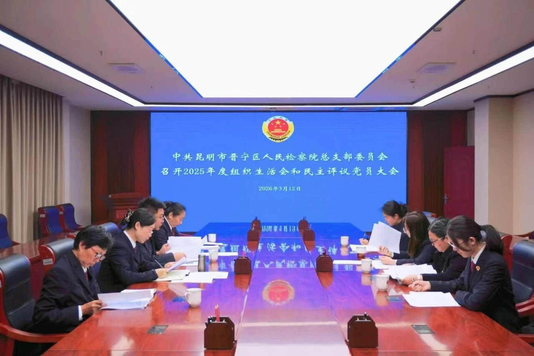 3月12日上午,晋宁区人民检察院机关党支部开展2025年度组织生活会,并开展民主评议党员工作。