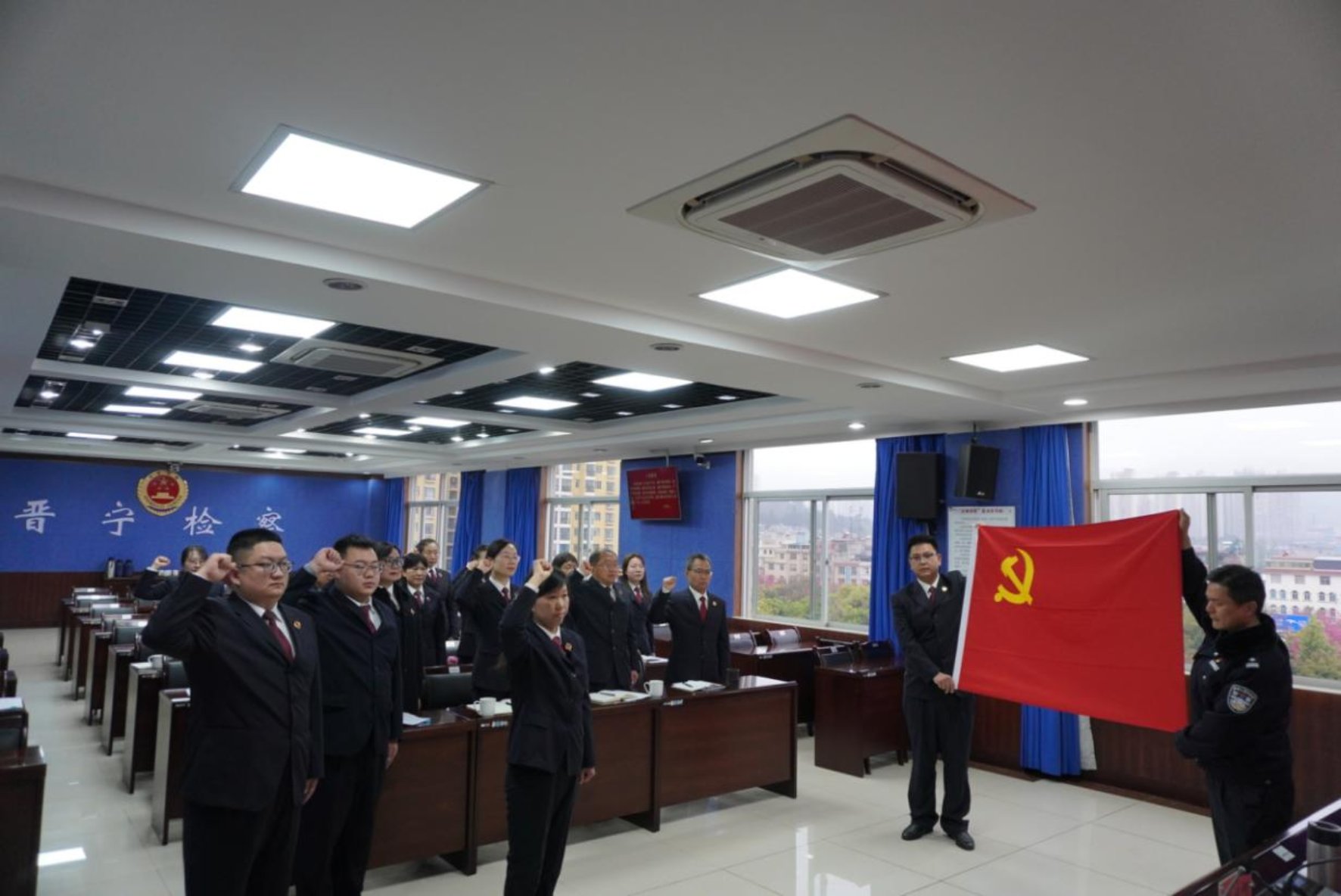 为进一步激发党员干警使命感和责任感,增强工作向心力和凝聚力,全体党员还重温了入党誓词。