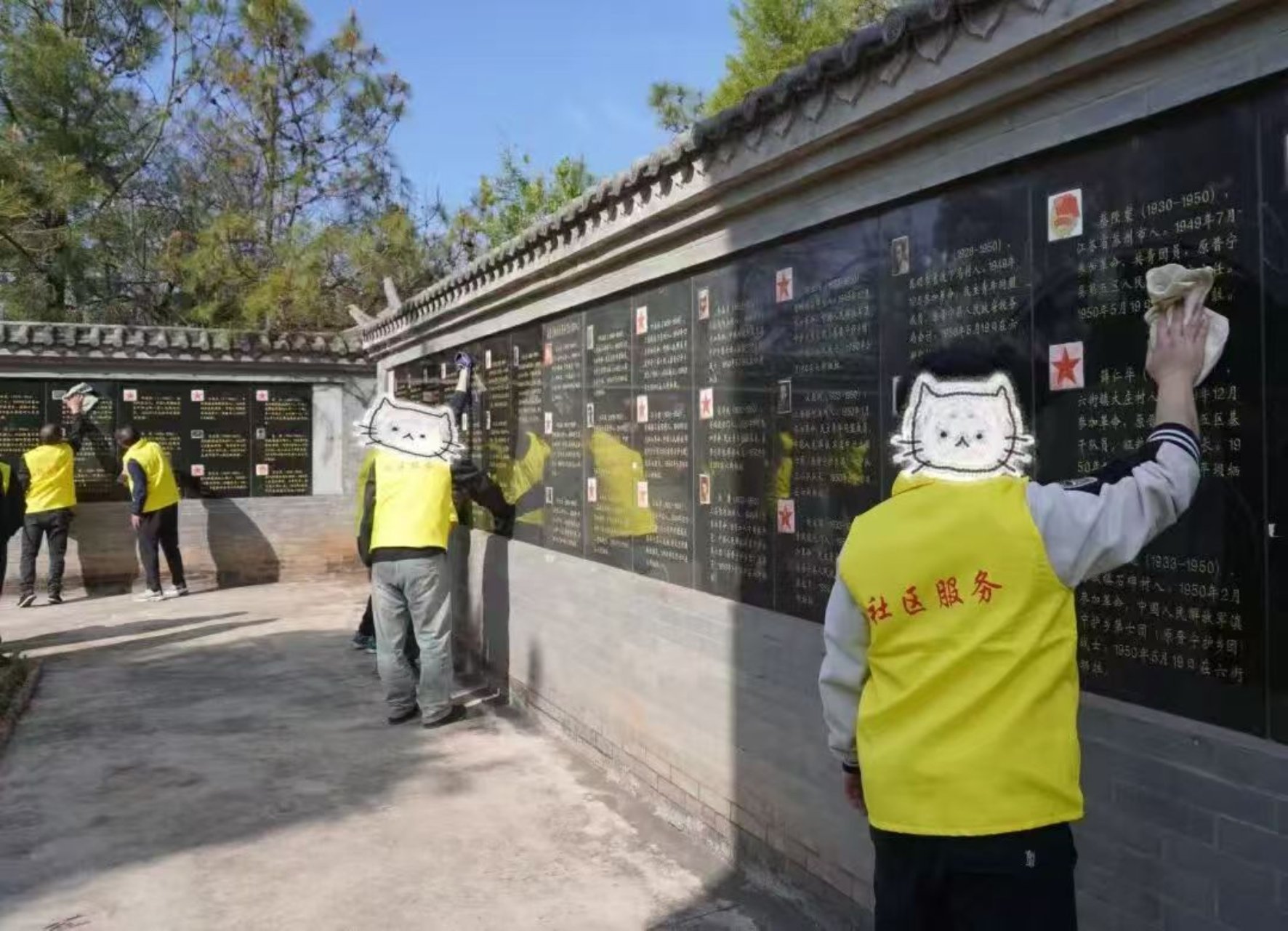 缅怀仪式结束后,社矫对象手持工具,仔细擦拭镌刻着英烈姓名与革命事迹的烈士纪念墙上的灰尘、清理陵园内的杂草杂物,以实际行动呵护陵园环境、触摸红色历史、接受心灵洗礼。